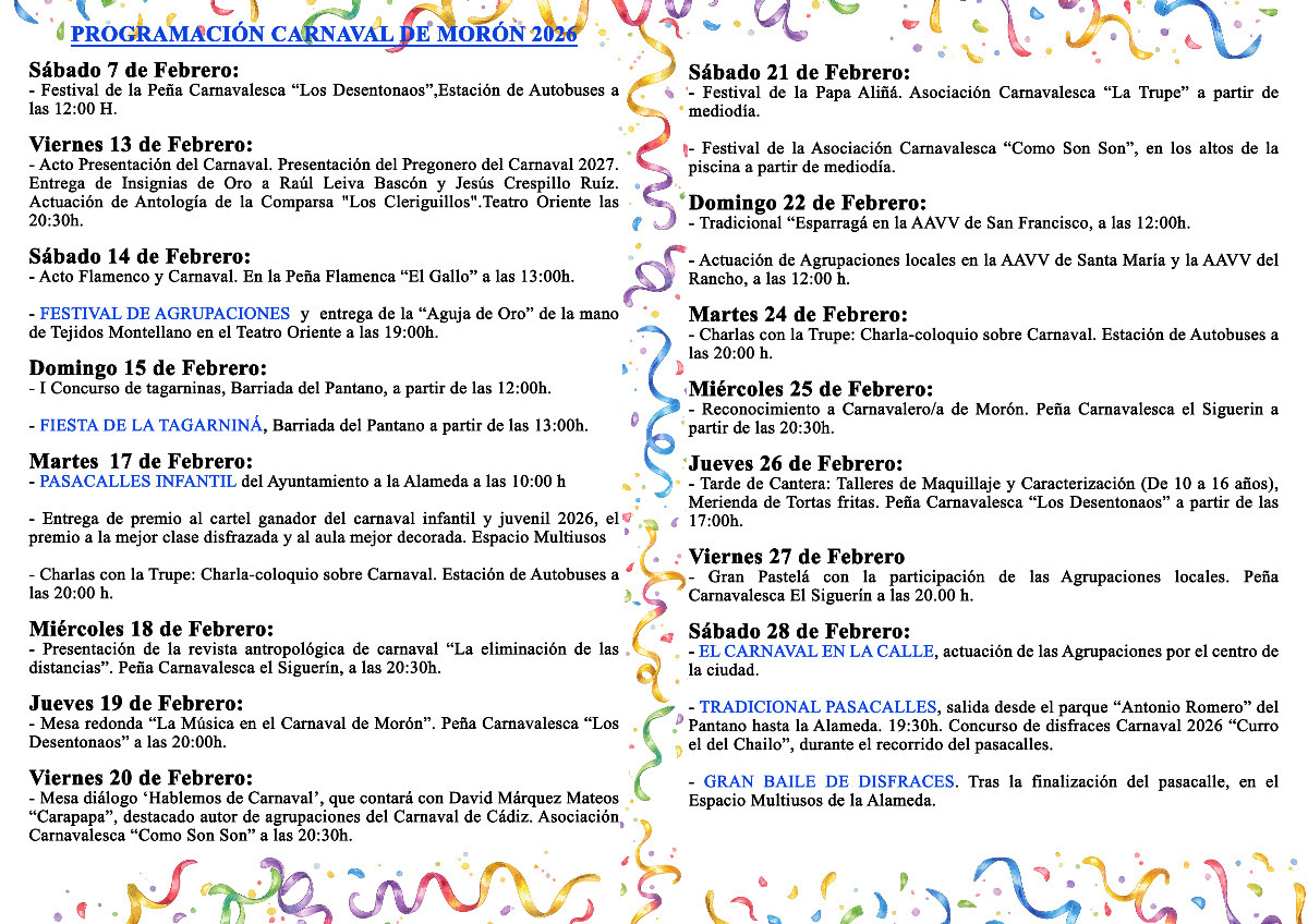 CARTEL Y PROGRAMA CARNAVAL 2026 MORÓN DE LA FRONTERA